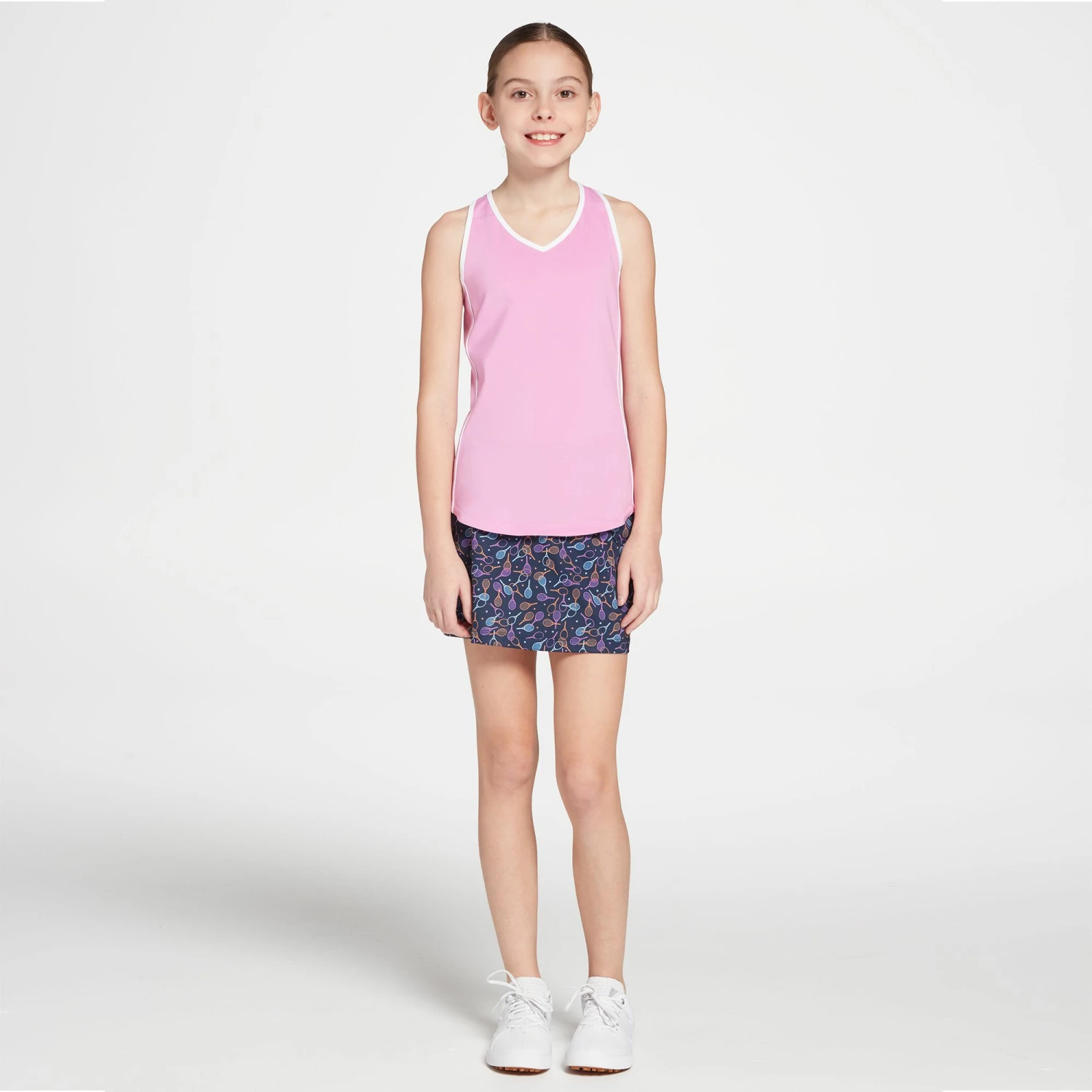 Your young tennis phenom will rule with her racquet in the Prince® Girlsโ Racquet Print Tennis Skort. The fun, feminine print will give her a stylish look, while Hydro-Dri® technology will quickly evaporate sweat to keep her dry and comfortable no matter how many sets she plays.