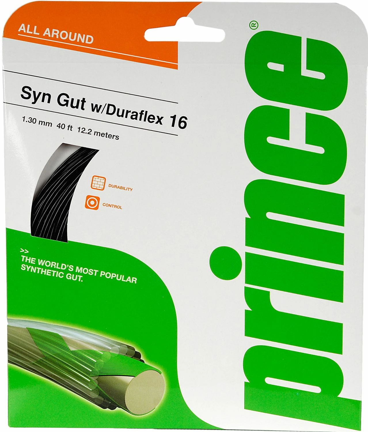 The Prince® Synthetic Gut with Duraflex® tennis string showcases a unique construction that is designed to provide enhanced durability and control for your game. Go up strong against the competiton with a string that ensures durability with every hit.